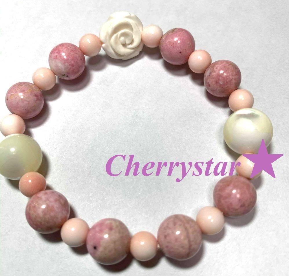 ☆ピンクオパール:コモンオパールと言われ宝石としても流通しています。芸術面での才能を発揮させてくれたり、霊的な感覚を高めてくれるパワーストーンと言われています主に金運、仕事アップ効果の高いパワーストーンブレスです。